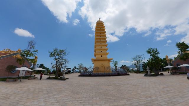 Пагода Трук Лам Пхунг Туй Сон (известная как Золотая пагода) — буддийский храм, расположенный на горе Чин Кхук в окрестностях Нячанга. Пагода расположена на высоте более 500 метров над уровнем моря, примерно в 10 км к юго-западу от центра города Нячанг. Благодаря своему уникальному расположению на вершине горы, она считается естественной смотровой площадкой, позволяющей посетителям насладиться всей красотой бирюзового залива и современных высотных зданий, извивающихся вдоль побережья. С территории храма легко можно увидеть знаменитые острова Нячанга, такие как Хон Тре, Хон Мун, Хон Там, остров Йен (Хон Ной), или вдалеке залив Нинь Ван. Сочетание безмятежной атмосферы храма и величественных природных пейзажей создает незабываемые визуальные впечатления для каждого посетителя. \ Самой примечательной особенностью комплекса является 13-этажная пагода Куанг Минь. Архитектура храма несет на себе сильное влияние восточноазиатской культуры, гармонично сочетающейся с духом дзен-буддийской секты Труц Лам Йен Ту, основанной императором Чан Нхан Тонгом.