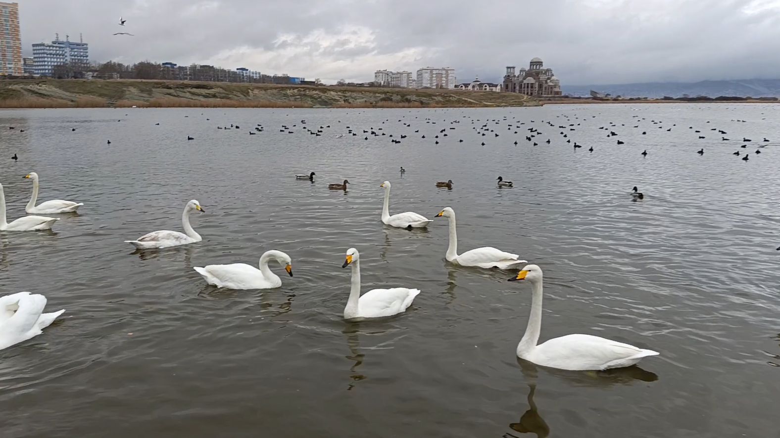Лебеди в Новороссийске 14 февраля 2026