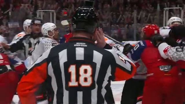 КХЛ. Локо_Авангард матч 2. Очаговая драка. Люди выскочили на лед со скамеек.