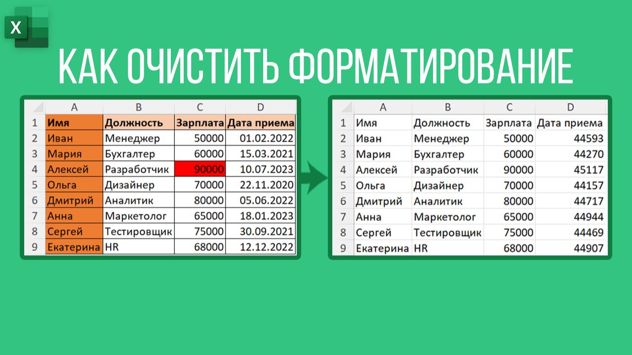 Как быстро очистить форматирование в Excel