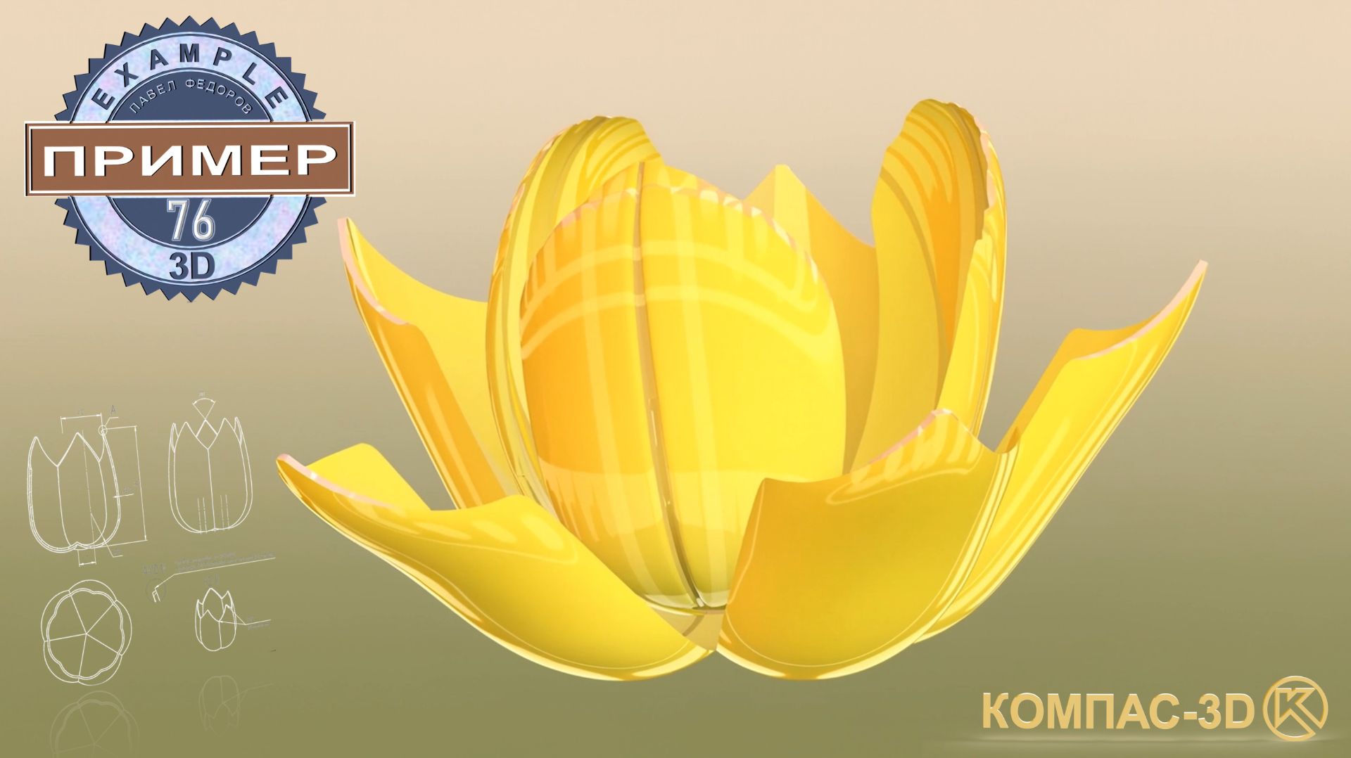 В этом видеоуроке создадим изящную 3D-модель бутона цветка 🌷 в КОМПАС-3D! Вы освоите продвинутые техники поверхностного моделирования, начиная с создания точных эскизов ✏️ и задания материала. Мы подробно разберем работу с ограничениями ⚙️ - выравниванием, равенством и точкой на кривой. Основной фокус урока - создание сложной геометрии лепестков с помощью команды "Элемент вращения" 🔄 и "Усечения поверхности". Вы научитесь создавать реалистичную форму цветка с помощью мощного инструмента "Массив по концентрической сетке" 🔁, а также освоите профессиональные операции: "Сшивку поверхностей" и "Придание толщины" для создания объемной модели. В завершение добавим реалистичные "Скругления" с изменением цвета 🎨 и проверим корректность модели через расчет массо-центровочных характеристик ⚖️. Этот урок идеально подойдет для всех, кто хочет освоить профессиональное моделирование сложных органических форм! Таймкоды: 00:00 - Описание построения 📋 00:20 - Создаем деталь 00:30 - Замена материала в свойствах 🎨 00:55 - Создание эскиза на плоскости 01:05 - Команда "Автолиния" ✏️ 01:15 - Тип сегмента "Дуга" 01:25 - Стиль "Осевая линия" 01:40 - Ограничение "Выравнивание" ⚙️ 01:50 - Выравнивание по горизонтали 02:00 - Команда "Авторазмер" 📏 02:10 - Диаметральный размер 02:30 - Отображение степеней свободы 02:40 - Ограничение "Точка на кривой" 03:00 - Вертикальный размер 03:10 - Выравнивание по вертикали 03:25 - Расстояние от начала координат 03:35 - Набор "Каркас и поверхности" 03:45 - Команда "Элемент вращения" 🔄 04:10 - Команда "Автолиния" 04:20 - Ограничение "Равенства" ⚖️ 04:40 - Команда "Угловой размер" 05:10 - Команда "Усечение поверхности" ✂️ 05:30 - Направление усечения 05:45 - Обрезка верхней части 07:00 - Команда "Массив по концентрической сетке" 🔁 07:20 - Команда "Сшивка поверхностей" 07:30 - Команда "Придать толщину" 07:50 - Команда "Скругление" 🔄 08:10 - Выбор ребер для скруглений 08:30 - Замена цвета скруглений 🎨 08:50 - Скрытие поверхностей 09:00 - Команда "Массо-центровочные характеристики" ⚖️ 09:15 - Ссылки на медиаресурсы 🌐 #КОМПАС3D #3Dмоделирование #БутонЦветка #ПоверхностноеМоделирование #ОбучающееВидео #CAD