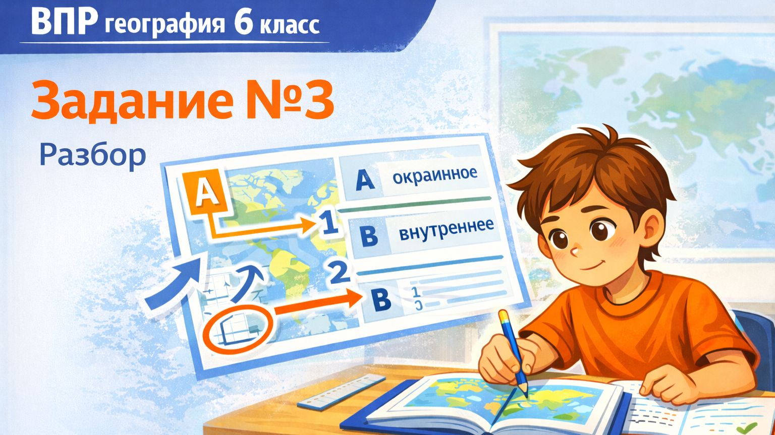 👉Все тренажёры ВПР по географии 6 класса: https://www.geo-faq.ru/vpr-geografia-6-klass Задание 3 — достаточно простое в ВПР по географии для 6 класса. В 2025 году его верно выполнили 76% шестиклассников. В этом видео ты разберёшься, как решать задание 3 быстро и правильно. В задании №3 нужно с помощью карта в атласе или рисунка задания определить к какому типу – окраинному или внутреннему – относятся три моря. Например, тебя могут спросить: к какому типу относится Белое море. В видео ты узнаешь: – чем отличаются окраинные и внутренние моря – как различать их на карте – простой алгоритм решения – типичные ошибки учеников После просмотра обязательно попробуй решить задания самостоятельно и проверь свою подготовку в онлайн-тренажёре. 👉 Тренажер Задания №3 ВПР по географии 6 класса: https://www.geo-faq.ru/vpr-6-klass-geografiya-zadanie-3 👉 Попробуй решить полный вариант ВПР по географии: https://www.geo-faq.ru/vpr-6-klass-geografiya-variant-10 Подпишись на канал — впереди разборы всех заданий ВПР по географии для 6 класса. #ВПР #география6класс #ВПРгеография #задание3 #подготовкакВПР