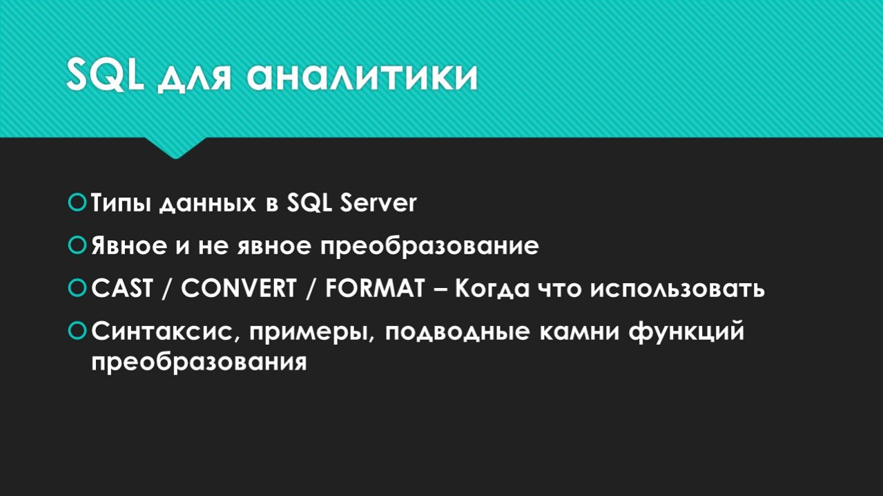 Типы данных в SQL Server и 3 способа их менять (CAST, CONVERT, FORMAT)