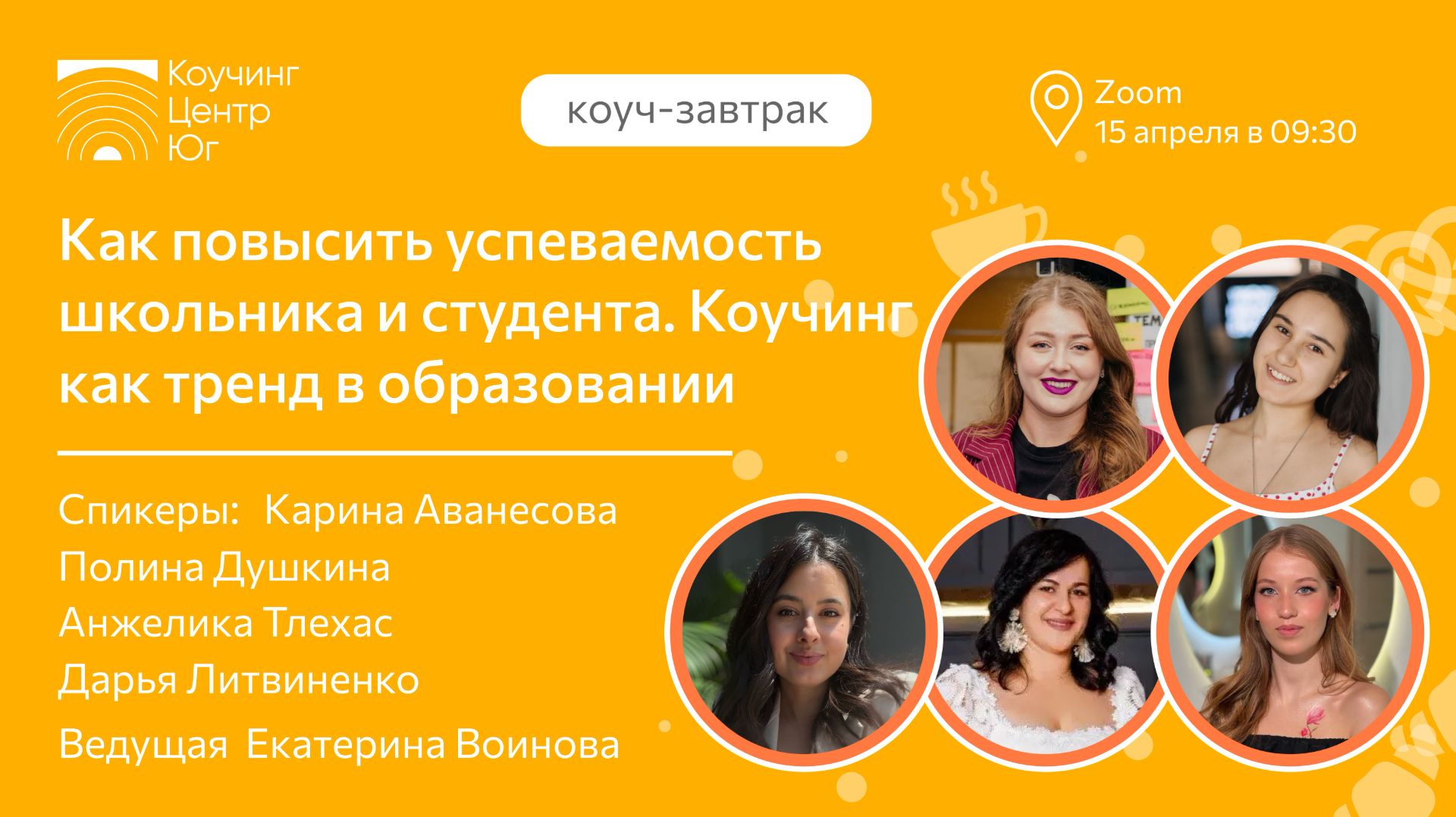 На завтраке разобрали: ✔️ Топ-3 коучинговых инструмента в обучении ✔️ Как коучинг влияет на профессиональную ориентацию школьников и студентов, а также на развитие их личности ✔️ Как коучинг изменил подход в обучении школьников и студентов, кейсы спикеров ✔️ Как коучинг помогает замотивировать школьников и студентов на обучение 🔊 Спикеры : Карина Аванесова - Наставник репетиторов, учитель английского 22 года, языковой и лайф коуч, КПТ психолог, бизнес- тренер 🔊 Полина Душкина - репетитор, профессиональный коуч ICF, бизнес-тренер 🔊 Анжелика Тлехас - студентка Казанского федерального университета, выпускница МЭУК 🔊 Дарья Литвиненко - школьница 10 класс, выпускница Международного Эриксоновского университета 🔊 Ведущая Екатерина Воинова - проф.коуч ICF Level2, WingWave-коуч, куратор МЭУК _______________________________________ Коучинг-Центр Юг - официальный партнёр Международного Эриксоновского Университета Коучинга (Канада) С 2011 г. мы подготовили более 1000 профессиональных коучей ICF и более 400 сертифицированных бизнес-тренеров. ⠀ Познакомиться с коучингом можно на программах: Тренинг "Введение в коучинг" https://clck.ru/3Aw2oV Наука и искусство трансформационного коучинга https://clck.ru/3Aw4nL Расписание всех наших программ 🗒️ https://clck.ru/32PGgt Общаемся ВКонтакте 🤗 https://vk.com/coachcentrug Полезное в Телеграме 👍🏻 https://t.me/+A1kvGRRNRddhZDgy