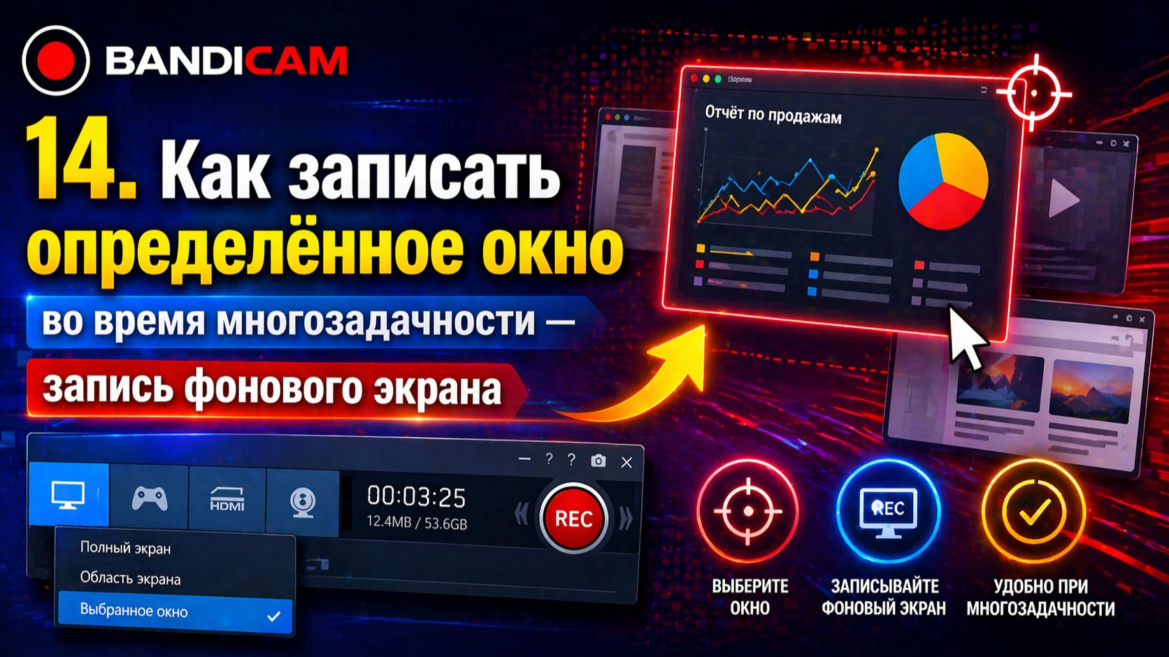 14. Как записать определённое окно во время многозадачности — запись фонового окна.